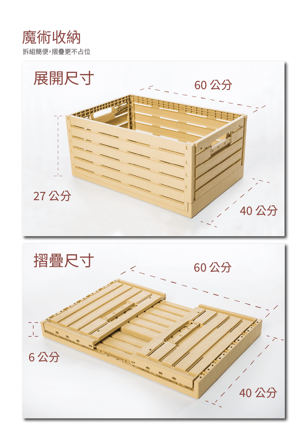 | ≡商品尺寸≡ 展開尺寸:60 x 40 x 27 (cm) 收納尺寸:60 x 40 x 6 (cm) ≡商品重量≡ 約 2.3 kg ≡商品材質≡ PP聚丙烯 ≡其他備註≡ .產品尺寸手工量測,尺寸若略有誤差屬正常情況。