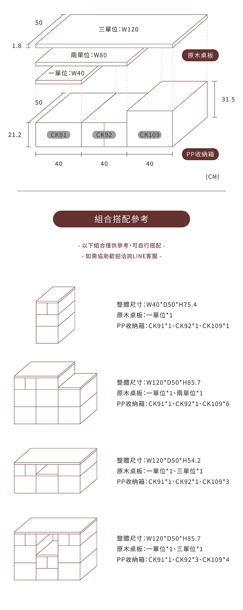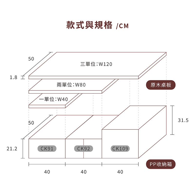 STEP 03. 依照收納箱搭配選擇桌板尺寸