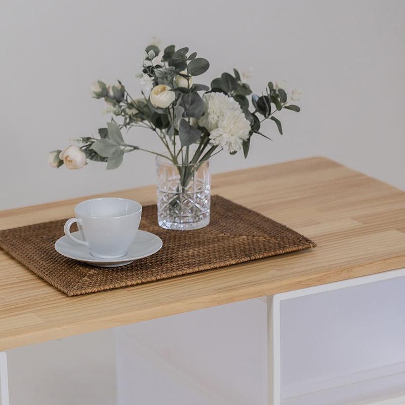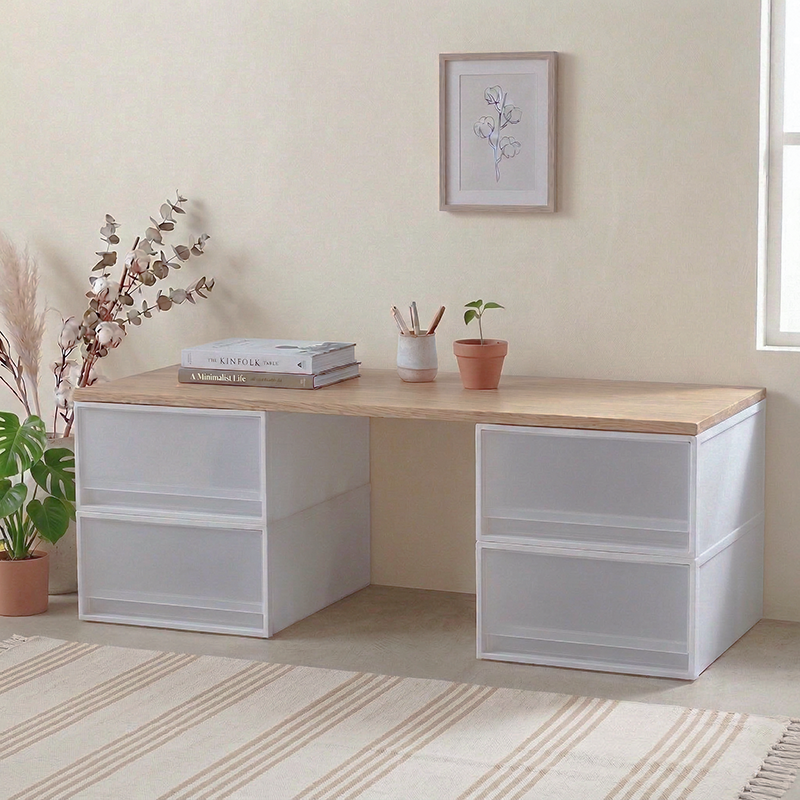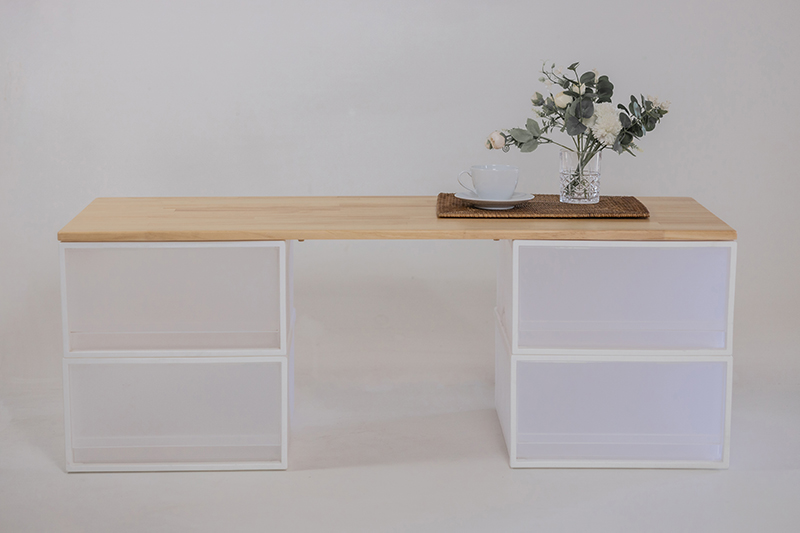 讓收納箱的結構感,被桌板的木質溫度柔和包覆。