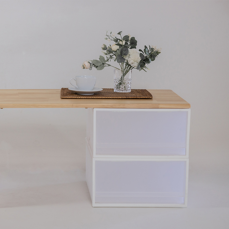 收納箱搭配桌板可完美保留擴充性,