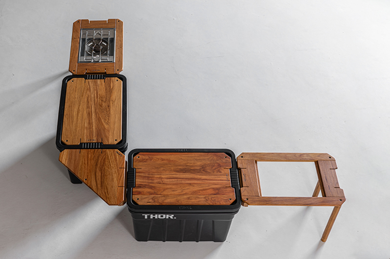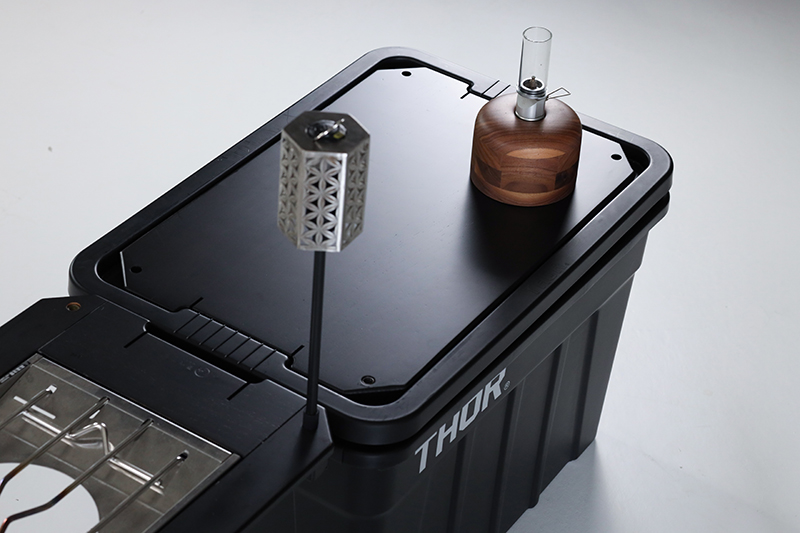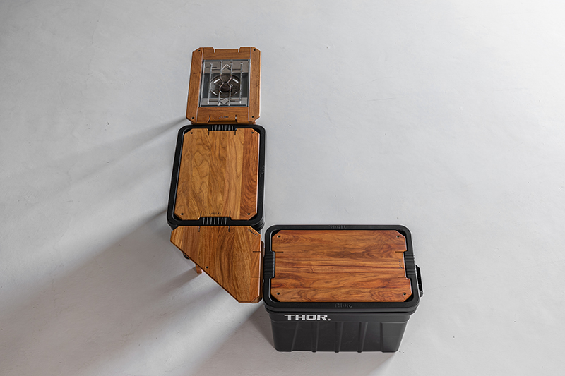 直接安裝於THOR收納箱把手,使桌板低於其他桌面做使用