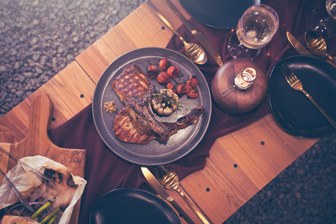 眼前這些美味的露營料理,食材、廚具、爐具、鍋碗瓢盆都是不可或缺的存在,然而,為避免桌面一片狼籍,建議露營新手使用餐廚桌,例如:「原木圓生」的原木手工餐廚桌,讓卡式爐皆可嵌入桌面,其設計是無縫平面式,鍋碗瓢盆、廚具等裝備既能整齊安放,清潔整理更為方便起來;同時,露營新手還可以標配垃圾袋掛架或紙巾掛架,在戶外露營炊事就如待在家裡料理一樣。