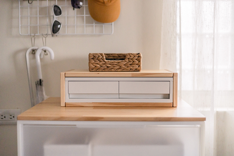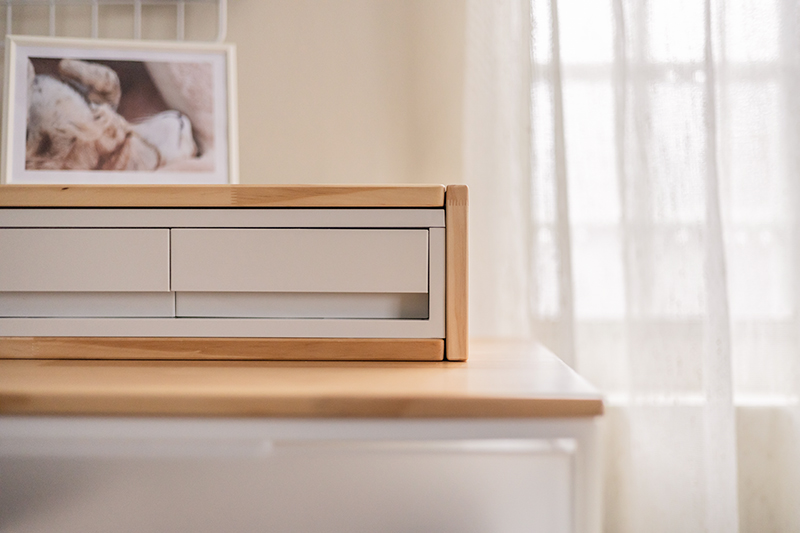 打造兩層式櫃體組合,釋放桌面置物空間