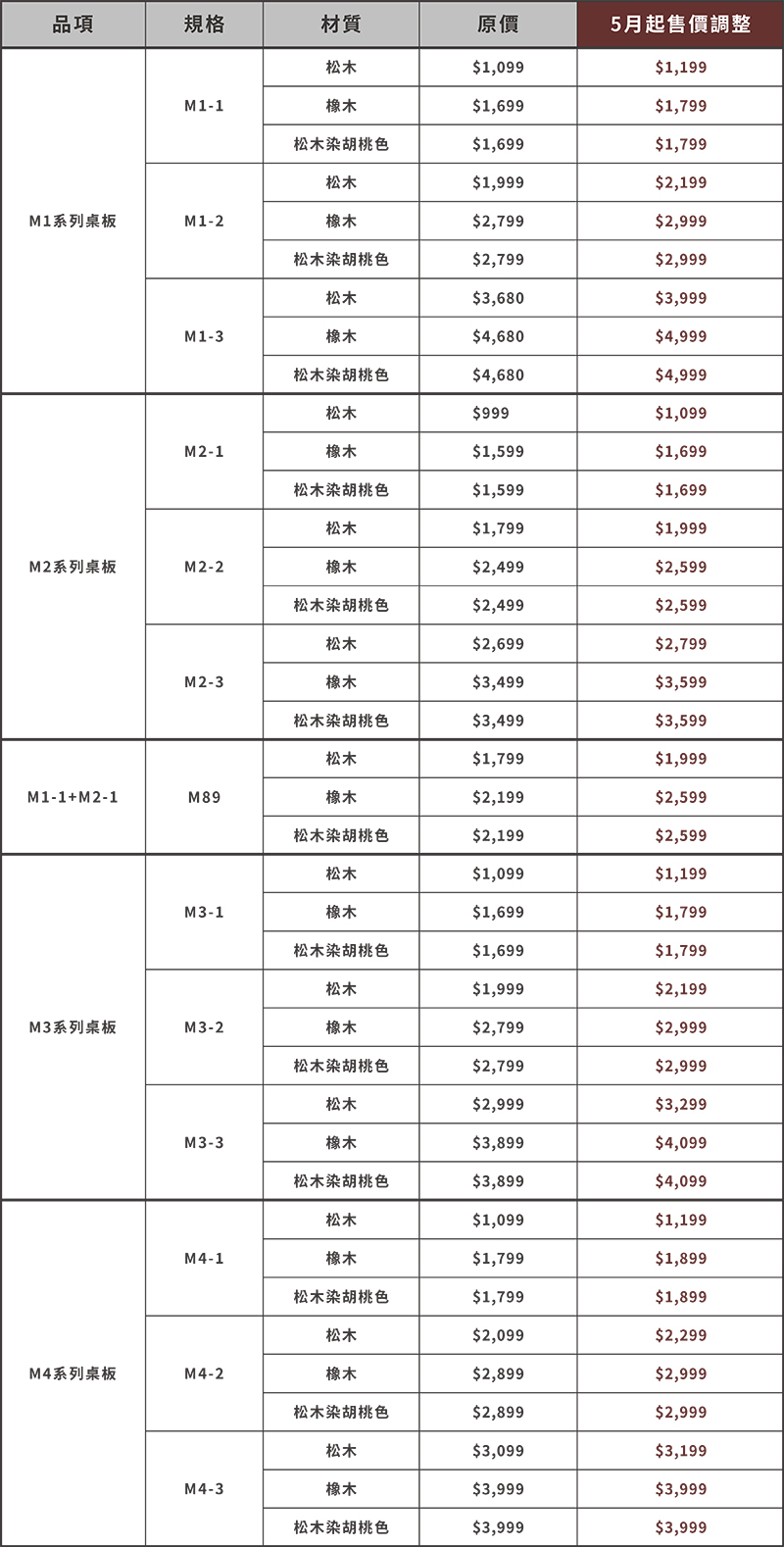 我們將於 2026 年 5 月 1 日起,調整部分商品的售價。