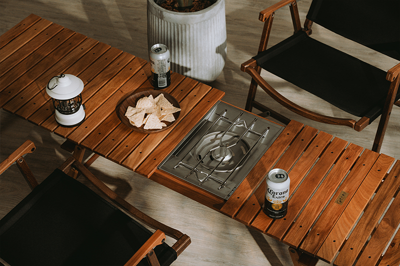 精選木質與繁複加工程序,將紅木的木紋與色澤 ,提升得更加鮮明與飽滿,紅琥珀的視覺呈現 ,與自然不失典雅的木質紋理,不必過多陳設 ,就能擁有令人稱羨的質感露營風格。